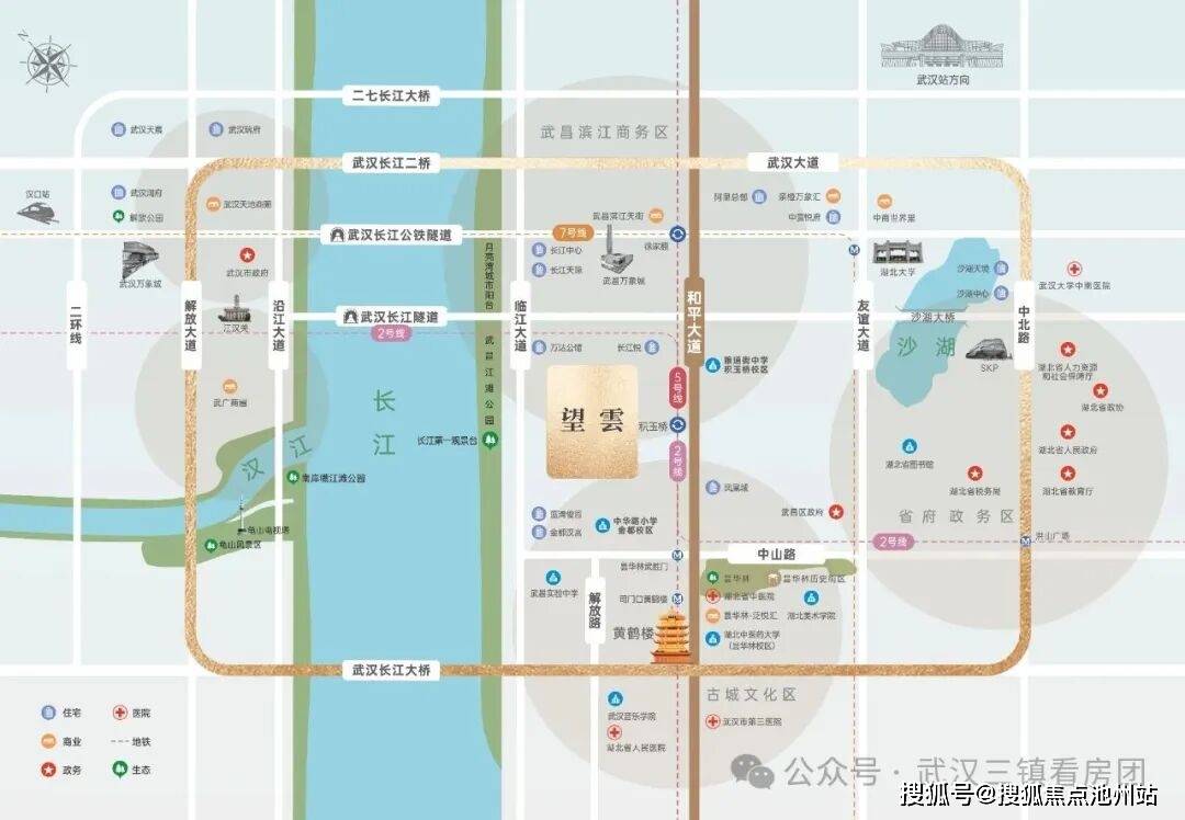 二轨二桥二隧:双地铁上盖,无缝衔接积玉桥站2号线号线;依托长江大桥、长江二桥以及长江隧道和武汉公铁隧道,快速纵横全城。
