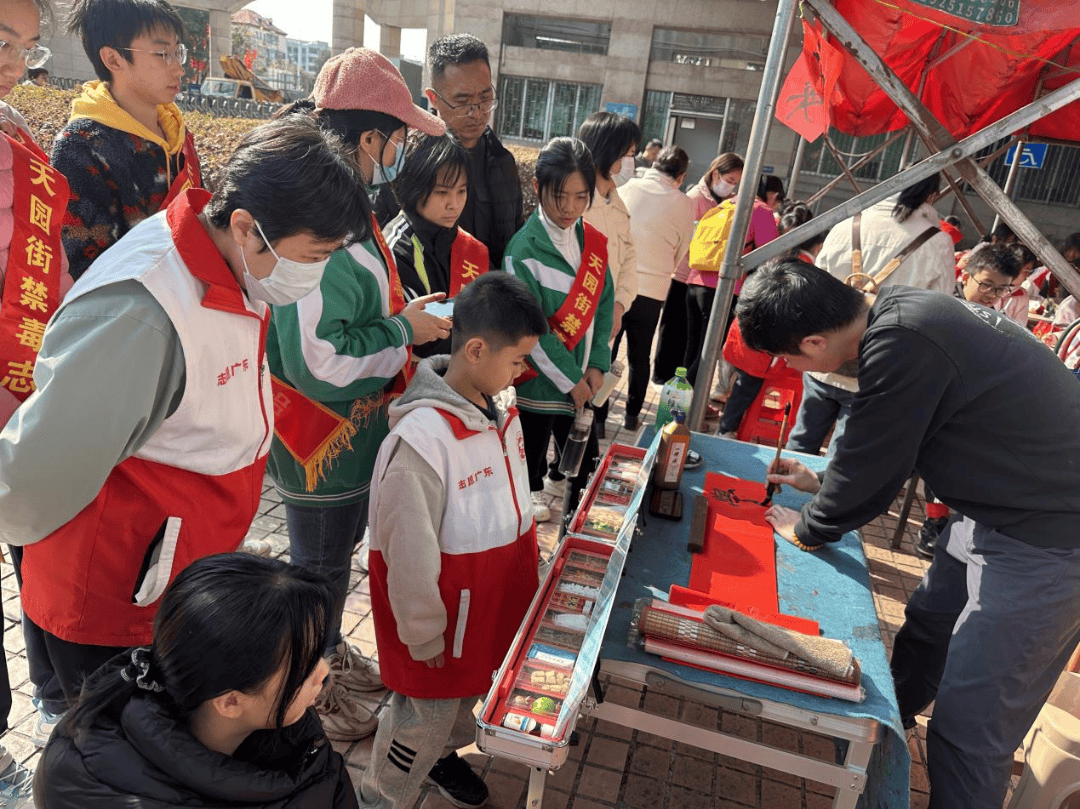 为进一步筑牢青少年禁毒防线,营造平安祥和的新春氛围,2月8日,天河区天园街道在天河公园南门志愿驿站开展“挥春送福・禁毒迎春”主题禁毒宣传活动。