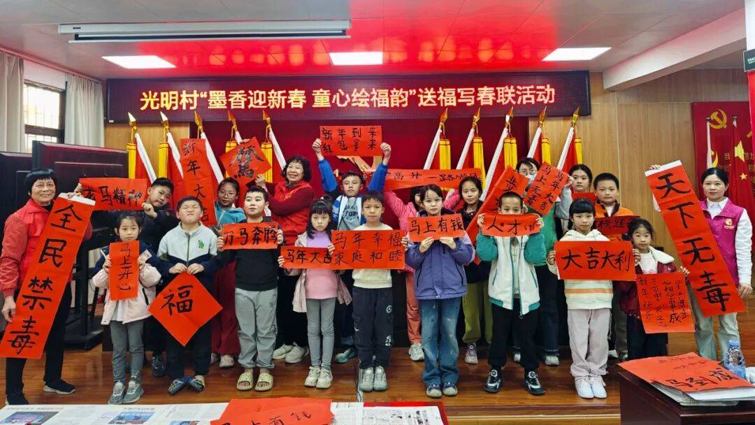 近日,三角镇平安法治办公室联合光明村党群服务中心,在村党群服务中心成功举办“墨香迎新春 童心绘福韵”送福写春联主题活动,将传统文化韵味与禁毒宣传教育巧妙融合,为新春佳节增添了独特的文化韵味。