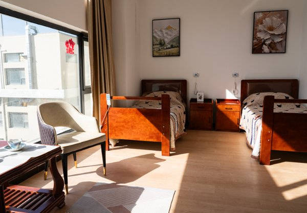 北京市海淀区国利来养老照料中心总占地约5000平方米,建筑面积3100平方米,配套近3000平米露天花园,绿植环绕、空气清新,是长者散步休闲、亲近自然的绝佳场所。室内配备高档纯实木家具,中央空调调节适宜温度,每个房间均设独立卫生间,24小时热水供应,居住体验兼具舒适与质感。