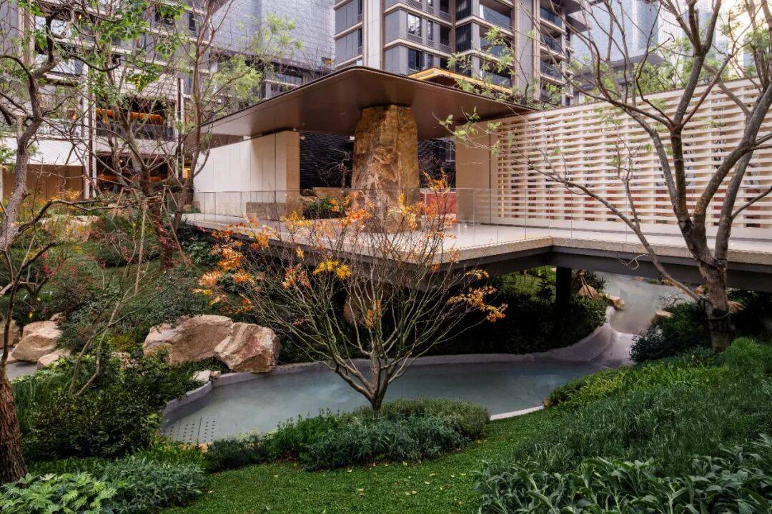 从已呈现的约9900㎡示范区来看,项目不仅复刻了冰川峡谷林盘秘境,更在叠瀑、溪谷、丛林、栈桥等景观间,植入十大主题场景,让园林可游、可栖、可交互,无论老人休闲、孩子撒欢、宠物奔跑,还是年轻人社交健身,都能在这里找到专属松弛感。