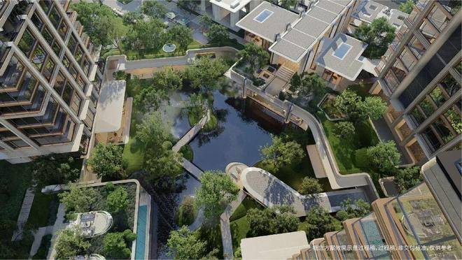 3500㎡下沉水苑“回归之境”,汇聚会客、泳池、茶室等多功能空间;百米绿茵“探索之境”,融入派对庭院、文学花园与游戏甲板;