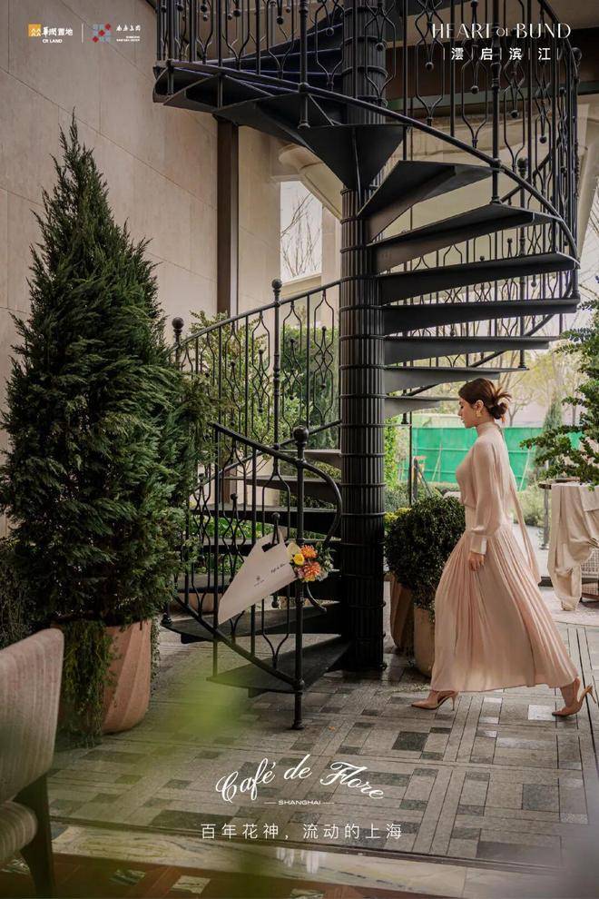 “上甲板”设计理念,Art Deco风格游艇扶手,青绿色系地面拼花,源自巴黎传奇酒店的铁艺雨棚,室内苍翠绿的岛台,“新艺术”风格的旋转楼梯……共同营造出一种无须刻意打扮、穿着拖鞋就能下楼的松弛与优雅。