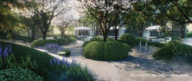 当然,在家里是景观,下楼就是公园,下面这种南侧花园人视角的示意图,是不是让你一秒来到浪漫的法式公园!