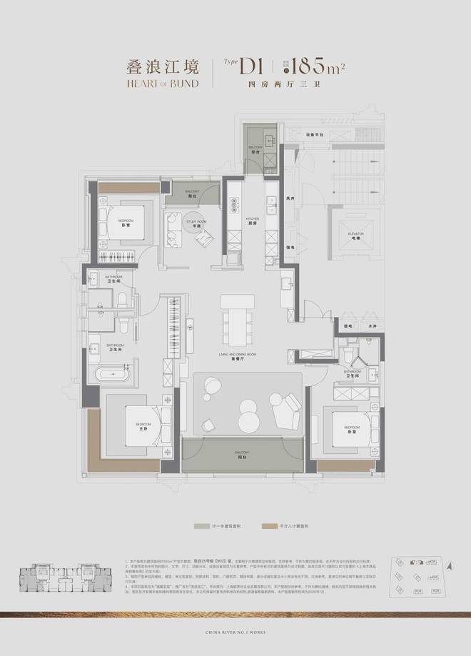 过去10年,上海一线滨江住宅,大户型是绝对主流,120㎡级3房产品从未出现。澐启滨江是因2021年后滩九宫格有中小套型指标要求,得以推出120㎡级产品。