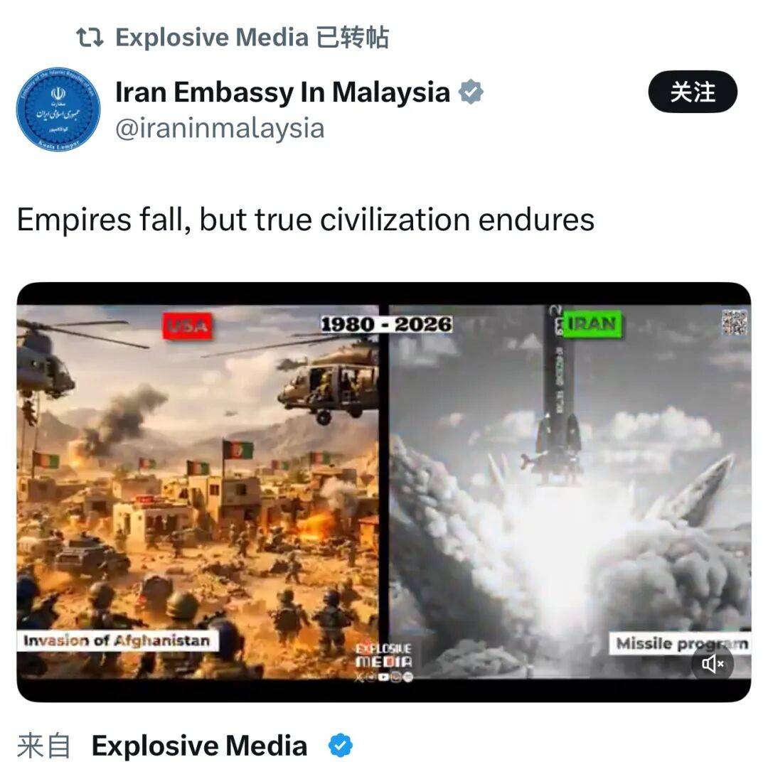 而这种做法意外地教会了对手如何反击。伊朗驻多国大使馆的社交媒体账号开始“整活儿”。
