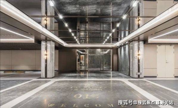 顶部焕然一新的镜面选材映衬着地库里的光影交织,调配后的造型灯发出柔和光感,开启一场归家的艺术之旅。为贴合项目高端住区调性,车马厅背景墙融入不锈钢造型细节,大面积奢石岩板覆于墙面;
