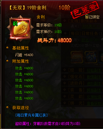 3.神识装备分为绿色,蓝色,紫色,金色,红色等品质,品质越高带来属性加成越高。