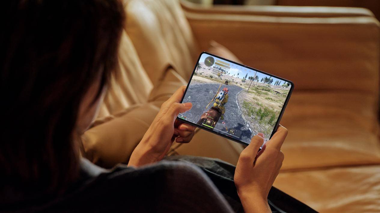 在游戏场景中,华为Pura X Max更是不折不扣的“物理外挂”。使用内屏打现象级手游《王者荣耀》,纵向视野大幅提升。这意味着能更早看到河道草丛的埋伏,提前做出反应,对战优势更明显。总而言之,不管休闲棋牌游戏,还是MOBA类,或者是FPS类游戏,华为Pura X Max都能带来颠覆性体验提升。